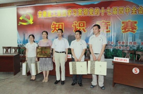 這次知識(shí)競(jìng)賽活動(dòng)由紀(jì)委、工會(huì)、黨委工作部、團(tuán)委聯(lián)合主辦,旨在深入學(xué)習(xí)宣傳貫徹黨的十七屆四中全會(huì)精神,集團(tuán)公司首次黨代會(huì)和年初工作會(huì)議精神。競(jìng)賽內(nèi)容包括黨的十七屆四中全會(huì)《決定》、《國有企業(yè)領(lǐng)導(dǎo)人員廉潔從業(yè)若干規(guī)定》、全省國有企業(yè)黨建工作會(huì)議精神、集團(tuán)首次黨代會(huì)精神和集團(tuán)2010年工作會(huì)議精神。所屬各單位積極準(zhǔn)備、認(rèn)真組織,共有18支代表隊(duì)參賽。經(jīng)過兩輪四場(chǎng)緊張角逐,安徽建工海外公司榮獲一等獎(jiǎng);省三建公司、省路橋公司榮獲二等獎(jiǎng);安徽建工國內(nèi)公司、安徽建機(jī)公司、省二建公司榮獲三等獎(jiǎng)。(安徽建工集團(tuán)文明辦)