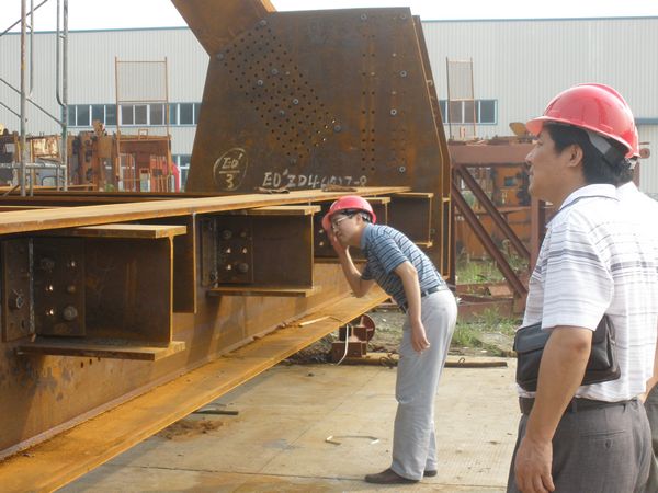 王元曦副總經理一行在聽取安徽建機公司董事長、總經理張衛東關于生產經營情況匯報后,興致勃勃地來到生產現場查看了火熱的生產場景。王副總一行重點查看了該公司近期成功研制的新產品PT7032塔機和鋼結構生產線。當看到該公司現場制作拼裝的巨大的鋼結構桁架橋梁時,王副總非常高興,走上前來仔細地查看部件的焊接點,不時地詢問生產和加工的細節情況,并向生產一線的職工致意親切的問候。