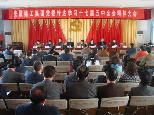 11月10日上午,安徽建工集團(tuán)有限公司黨委召開(kāi)傳達(dá)學(xué)習(xí)十七屆五中全會(huì)精神大會(huì),集團(tuán)公司領(lǐng)導(dǎo),所屬各單位領(lǐng)導(dǎo)班子成員、黨群部門負(fù)責(zé)人,集團(tuán)機(jī)關(guān)全體黨員參加會(huì)議。