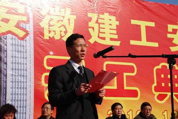 開工典禮上,安徽建工集團董事長胡運成發表了充滿激情的講話。他說:“記得2003年7月28日,是安徽建工歷史上一個難忘的日子。集團機關從建設廳大院搬遷到建工大廈集團本部,擁有了自己的辦公樓,從此,我們開始了改革脫困的艱難征程。7年來,我們堅持解放思想,與時俱進,按照“脫胎換骨、二次創業”系統改造企業的思路,以發展為主線,以創新為動力,以改革為突破口,完善戰略,提升文化,整合資源,調整結構,強化管理,加強黨建和精神文明建設,全面推進企業進步,在充分競爭的市場環境下,連續7年實現了跨越式發展。7年后的今天,我們站在又一個新的起點,即將開始“十二五”的征程。我們即將開工建設一座現代化的新辦公樓——安建大廈。這標志著安徽建工“泥瓦匠住草房”的時代即將結束。”他指出,安建大廈的開工,是安徽建工發展史上具有里程碑意義的大事、喜事。大廈的建設對于優化集團資產結構和資源配置,改善辦公環境,保障機關高效有序運轉,樹立企業形象,實施品牌戰略,提升安徽建工的知名度和美譽度,增強發展能力和發展后勁,推動集團又好又快發展,實現二次創業目標具有非常重要的意義。