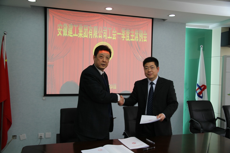 3月23日下午,安徽建工集團公司工會召開一季度工會主席例會。所屬各單位工會主席參加會議,集團公司黨委書記張海平到會看望工會干部并作重要講話,會議由集團公司工會副主席李鵬飛主持。