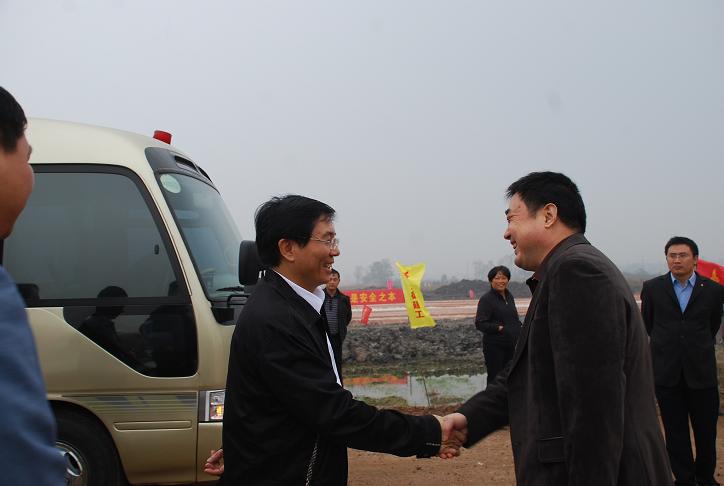 在鳳鳴大道建設現場,孫金龍同志與胡運成董事長親切交談,希望安徽建工集團高度重視江南集中區建設,加強管理,狠抓質量,創建優質工程,為集中區建設作出應有貢獻。