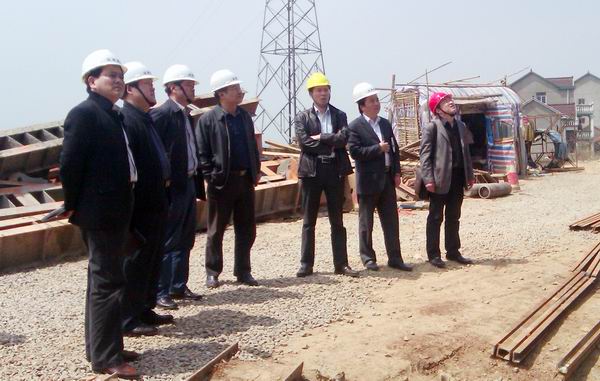 4月6日上午,安徽建工集團(tuán)副總經(jīng)理、總工程師戴良軍攜總經(jīng)理助理郭道真一行,在路橋公司總經(jīng)理汪衛(wèi)東、副總經(jīng)理盛明宏等陪同下,蒞臨宣貍BT項(xiàng)目檢查指導(dǎo)工作。