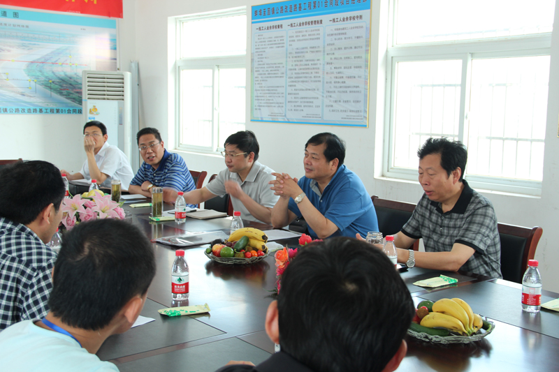 楊總一行仔細察看了工程施工現場,并在項目部會議室認真聽取了項目分管人員的工作匯報,就項目內外部形勢作了客觀、全面的分析。面對業主工期壓縮等一系列問題,楊總指出,蚌埠至固鎮公路改造工程是蚌埠市重點工程,政治敏感度高,社會關注度大,在工期壓縮、保證質量的前提下,如何實現工期、經濟目標是工作難點,需要項目上下乃至公司的共同努力。
