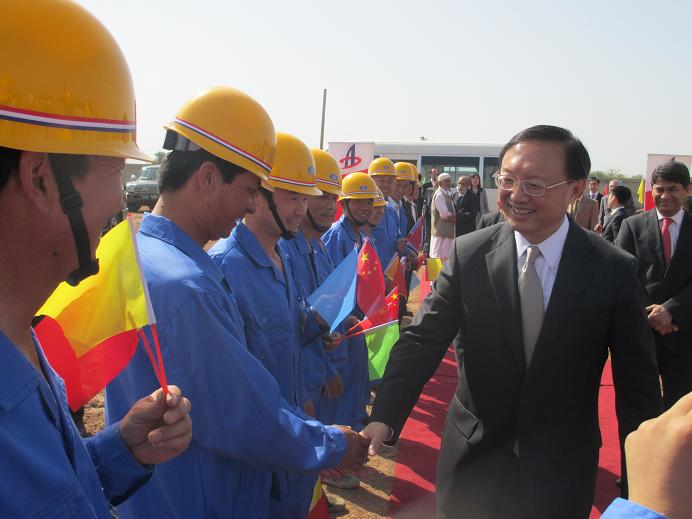 5月30日,外交部部長楊潔篪在中國駐巴基斯坦大使和使館有關人員的陪同下,視察了安徽建工集團駐巴基斯坦使館項目。