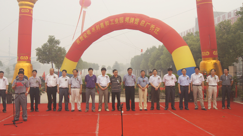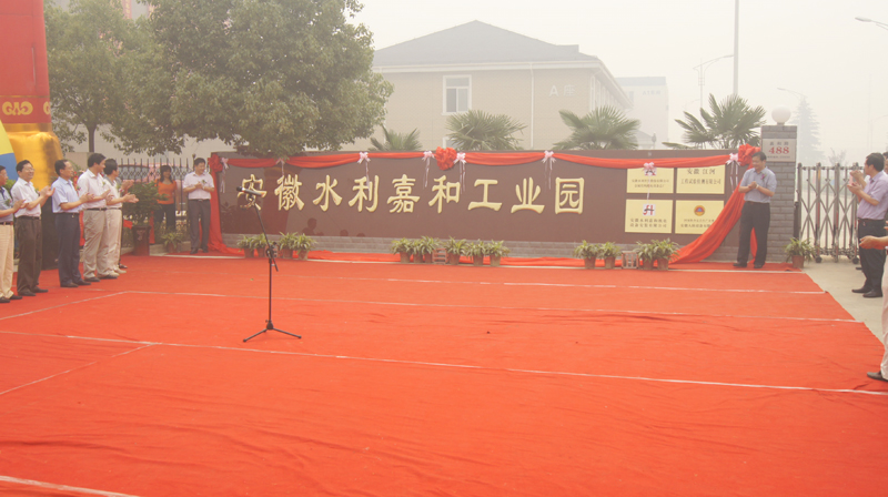 楊總和許總共同為安徽水利嘉和工業(yè)園揭牌。慶典活動結束后,各級領導嘉賓參觀了嘉和工業(yè)園廠區(qū)及辦公樓。