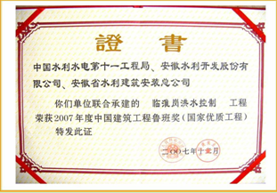 | 工程概況: 工程位于淮河干流中游,主體工程處于王家壩與正陽關之間,跨霍邱、潁上、阜南三縣。工程主要任務為當淮河上中游發生50年一遇以上洪水時,配合現有水庫、河道堤防和行蓄洪區、調蓄洪水、消減洪峰,使淮河中游正陽關以下主要防洪保護區的防洪標準由不足50年一遇提高到100年一遇,確保淮北大堤和沿淮重要工礦、城市的安全。主要建設內容包括主體工程、壩區占地及移民安置工程、河南省淹沒影響處理工程、安徽省淹沒影響處理工程。 姜唐湖進洪閘,位于老淮河主槽與49孔淺孔閘間的主壩上,共14孔。每孔凈寬12.0m,閘孔總寬196.82m,設計進洪流量2400立方米/秒。 為Ⅰ級建筑物,是臨淮崗洪水控制工程主要建筑物之一,在設計洪水情況下,姜唐湖進洪閘與49孔淺孔閘、12孔深孔閘共同控制下泄流量,相應滯蓄庫容85.6億立方米。工程于2003年4月24日正式開工,2005年5月24日完工,2005年8月8日通過驗收。 本工程主要承建內容為鋼筋混凝土開敞式閘室、公路橋和人行便橋,鋼筋混凝土框架式啟閉機房、橋頭堡、弧形鋼質工作閘門、QHJ-2×225KN-12m弧門卷揚機,鋼筋混凝土岸、翼墻,上游鋼筋混凝土鋪蓋、毛石混凝土護底和拋石防沖槽,下游鋼筋混凝土消力池、鋼筋混凝土及毛石混凝土海漫和拋石防沖槽。 | ||||||