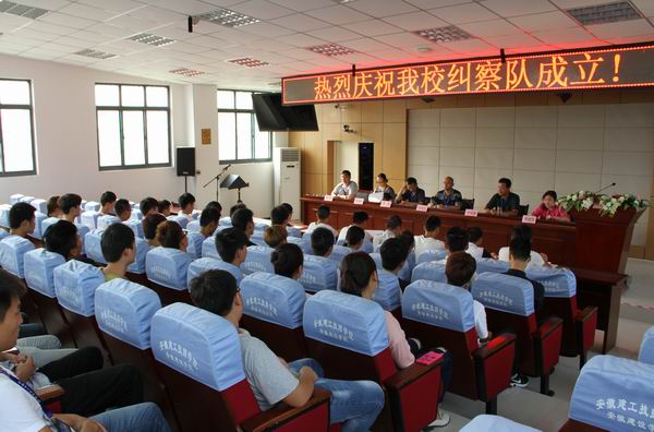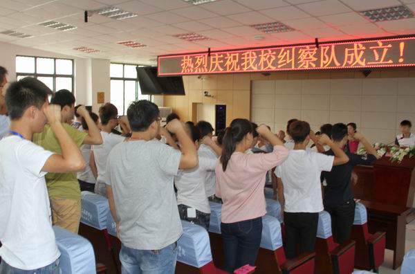 9月23日下午三點(diǎn),校衛(wèi)隊(duì)成立大會(huì)在學(xué)校錄播室舉行。副校長呂良玉、學(xué)生處處長付書亭、建筑工程系黨支部書記李波、機(jī)電工程系黨支部書記朱曉玲、建筑經(jīng)濟(jì)管理系黨支部書記李繼萍、保衛(wèi)處鮑少華老師和所有校衛(wèi)隊(duì)成員參加了儀式。