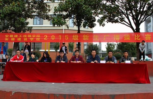 為增強學生體質,開展好學生課間操活動,提高課間操的質量,10月28日中午,安徽建工技師學院在田徑場舉行2015級學生廣播操比賽。