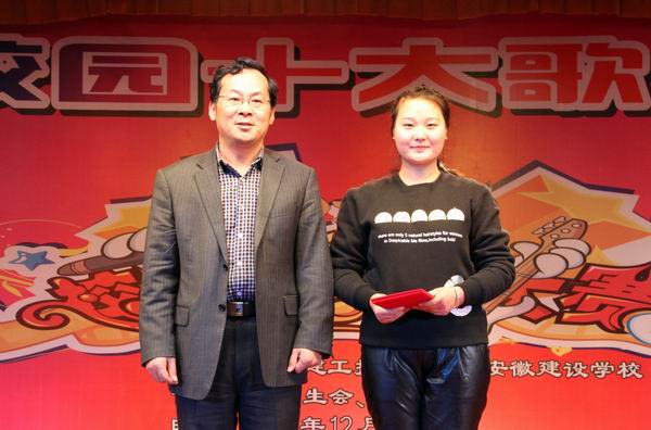 踏浪節(jié)拍,用歌聲演繹青春旋律;唱和音符,以姿態(tài)詮釋夢(mèng)想航程。12月16日晚6點(diǎn)18分,安徽建工技師學(xué)院第八屆“唱響校園”歌手大賽總決賽在校禮堂隆重舉行。校長(zhǎng)張衛(wèi)東、副校長(zhǎng)呂良玉、紀(jì)委書(shū)記、工會(huì)主席龔維加、學(xué)生處處長(zhǎng)、團(tuán)委書(shū)記付書(shū)亭、機(jī)電工程系黨支部書(shū)記朱曉玲、成教大專(zhuān)部主任衛(wèi)功劍和700余名學(xué)生一起觀(guān)看了比賽