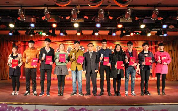 任建設副校長給獲得“校園十佳技能明星”的同學頒獎
