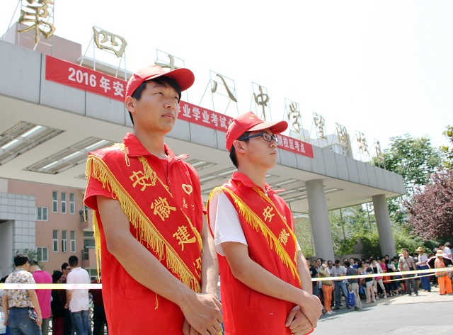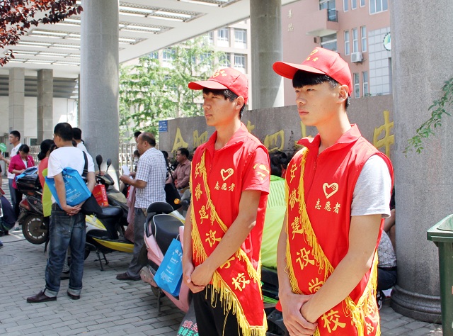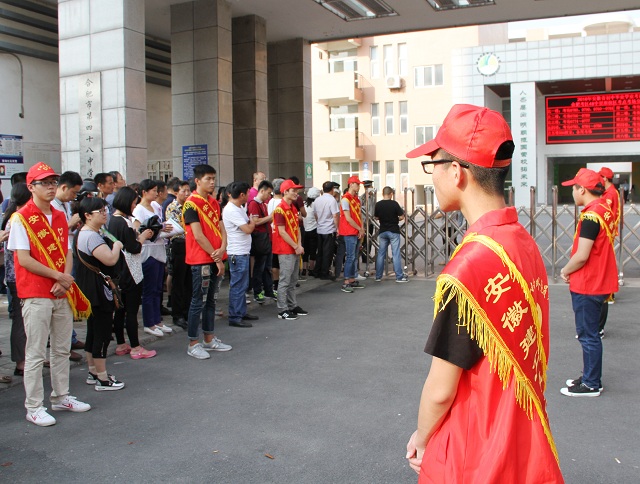 6月14日-16日是我省中考日,為弘揚“奉獻、友愛、互助、進步”的志愿服務精神,營造和諧的中考環境,安徽建設學校組織青年志愿者在合肥48中望湖校區考點開展了“為2016中考護航”活動,奉獻愛心,助力中考。