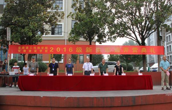 8月22日上午8點(diǎn)30分,安徽建工技師學(xué)院在學(xué)校操場召開2016級新生軍訓(xùn)開營典禮。副院長呂良玉、保衛(wèi)處處長胡頻、學(xué)生處副處長王海、機(jī)電工程系黨支部書記朱曉玲、建筑經(jīng)濟(jì)管理系黨支部書記李繼萍、建筑經(jīng)濟(jì)管理系主任陸飛虎、軍訓(xùn)教官李超隊(duì)長及所有新生班主任和全體新生參加了開營典禮。
