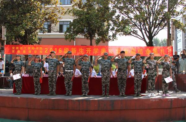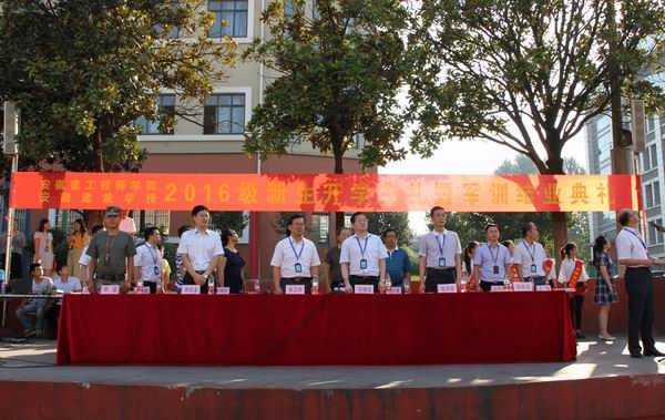 9月1日上午8點,安徽建工技師學院在田徑場召開2016級新生開學典禮暨軍訓結業典禮。院長兼黨委書記張衛東、副院長任建設、呂良玉、院長助理張齊欣、軍訓隊隊長李超和相關部門領導同志出席了典禮。典禮由副院長呂良玉主持。