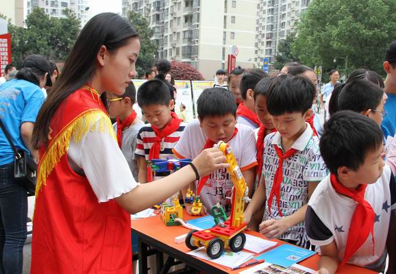 9月21日上午,安徽建工技師學院12名小志愿者再次走進望湖社區,開展了“科普進社區,幸福你我他”志愿者活動。