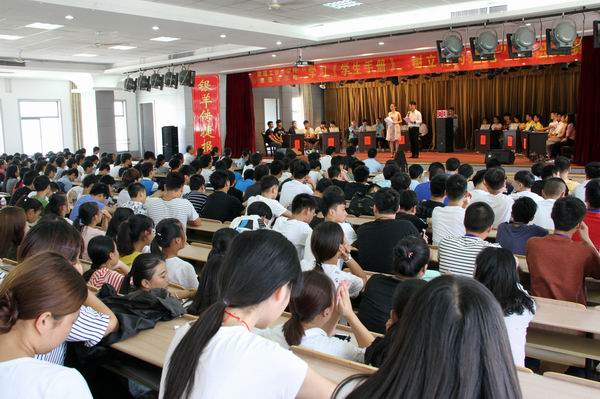 9月23日下午,安徽建工技師學院在學院禮堂開展了“學習《學生手冊》,樹立行為規范”知識競賽活動。建筑工程系黨支部書記李波、建筑經濟管理系黨支部書記李繼萍、機電工程系黨支部書記朱曉玲、成教大專部學生科科長衛功劍、團委書記王海和600余名學生觀看了比賽。