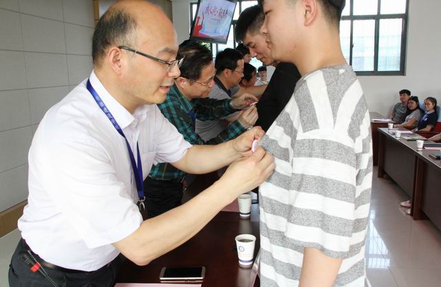 學院領導給參加活動的學生代表佩戴了成人徽章