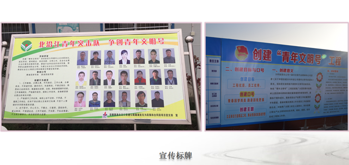 北沿江青年突擊隊在組建之初,就明確了爭創目標,提出“激揚青春建新功,砥礪奮進勇擔當”的創建口號,及時召開動員大會,按照《安徽建工集團青年文明號管理辦法》和《安徽路港公司青年文明號創建方案》的要求,結合項目生產實際,制定了詳細的爭創目標和計劃,青年突擊隊員以身作則,亮身份,踐諾言,積極開展了相關創建活動。