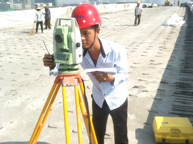 龍河路橋項目是市政橋梁工程,其測量工作精度要求極高,一分一毫的差距都會造成不可挽回的損失,測量員潘瑞 對自己的要求是“分毫都不能差,差分毫都不行”,將誤差控制到毫米級別是他的任務,“左5毫米,后退3毫米。”是他最簡單、最常說的一句話。白天的工作完成,晚上的工作接踵而至,首先是計算第二天需要的數據,這樣就可以省去在現場計算的時間,提高工作效率,其次是完善相關資料,由于測量專業性強,無法配備專職資料員,所有測量資料都需要他自己完成。日積月累的測量工作,讓潘瑞的皮膚越來越黑,熟悉他的人都知道,這是風吹日曬留下的印記,但他卻笑著說:“測量工作追求的是精準和完美,是人生的樂趣。”