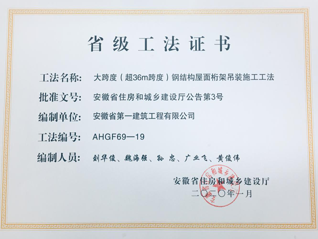 省級工法證書