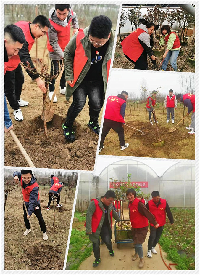 為了給孤兒們創造更美好的環境,志愿者們決定在基地的空地,為孤兒們種下了一園月季樹。當天,志愿者們齊心協力,分工明確,你挖坑,我扶樹,你埋土,我踩實……在春日中孕育出一片美麗的希望。