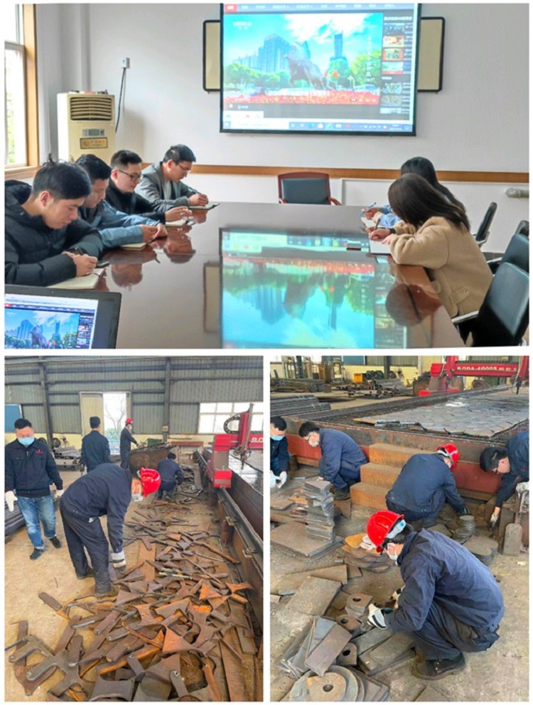 綜合團支部積極響應號召,組織團員青年開展了以協助清理廢棄邊角料為主要內容的志愿服務活動,積極引導支部團員青年發揚愛崗敬業、無私奉獻的“螺絲釘”精神。由于等離子切割效率高,任務重,為了加快生產進度,故臨時將料頭堆積在一旁。團員青年齊心協力,將堆積的廢棄料頭進行了清理,盡管大家搬得滿身大汗,但臉上還洋溢著燦爛的笑容。緊接著,團員青年們還對數控下料零部件碼放區域進行整理歸類,既騰出來了空閑場地,又將零部件按規格碼放,方便師傅們轉運。最后,團員青年們分為兩隊,一隊將分廠廢舊紙盒集中清理,另一隊打掃車間衛生,還車間師傅一個干凈整潔的工作環境。