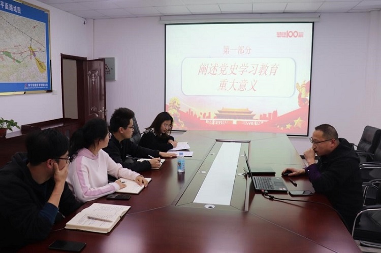 活動中,團小組組長馬凱給青年團員上了一堂《學黨史 悟思想 辦實事 開新局》團課。全體人員集中學習了習近平總書記在黨史學習教育動員大會上的重要講話,并交流學習心得,切實從中明晰責任、獲得啟示、吸取力量。