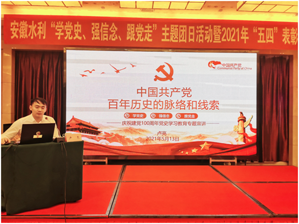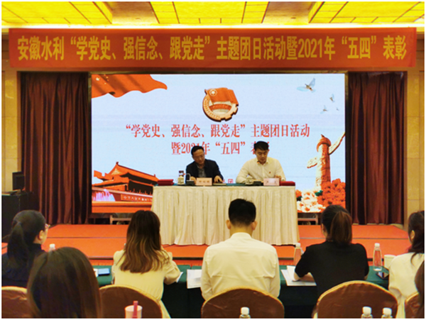 為慶祝中國共產(chǎn)黨成立100周年、五四運(yùn)動(dòng)102周年,傳承五四精神,賡續(xù)紅色血脈,激發(fā)青春力量,激勵(lì)廣大團(tuán)員青年投身公司“十四五”高質(zhì)量發(fā)展,進(jìn)一步推深做實(shí)公司共青團(tuán)系統(tǒng)黨史學(xué)習(xí)教育,2021年5月13日下午,安徽水利團(tuán)委在安徽水利和順大酒店(合肥店)舉辦“學(xué)黨史 強(qiáng)信念 跟黨走”主題團(tuán)日活動(dòng)暨五四表彰會(huì)。安徽水利黨委委員、紀(jì)委書記鄭桂林出席活動(dòng)并講話。所屬各團(tuán)組織負(fù)責(zé)人、“一紅兩優(yōu)”受表彰人員、青年代表共50余人參加會(huì)議。