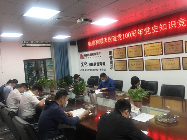 上好“創新黨建課”,和順地產所屬各單位一方面利用網絡平臺與互聯網資源,積極開展視頻黨課,組織全體黨員集中觀看黨史紀錄片、紅色主題影片;另一方面,積極組織戶外紅色教育實踐,赴臺兒莊、藕塘革命紀念館、渡江戰役總指揮前委舊址等地聆聽革命故事,感受革命情懷;除此之外,多家黨支部“以考促學”,開展黨史知識測試、知識競賽等活動,不斷鞏固學習效果。
