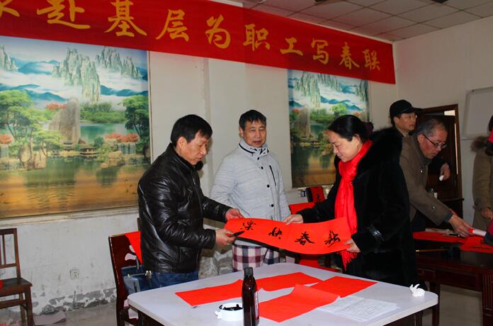 “歡聲笑語(yǔ)賀新春 歡聚一堂迎新年”,2月10日,正值農(nóng)歷臘月二十五,安徽建工集團(tuán)工會(huì)組織建工集團(tuán)省書協(xié)會(huì)員、建工書法家到安徽建機(jī)公司職工居住小區(qū)“建機(jī)家園”為職工書寫春聯(lián)。