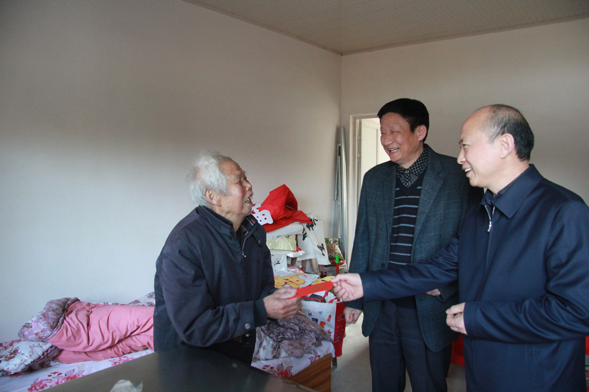 趙時運董事長一行在駐村工作隊第一書記鄭軍同志的陪同下,先后參觀了集團捐資幫扶的解決五保戶住房的“幸福之家”項目、18畝油桃采摘園和垂釣中心產業基地、趾鳳村大舞臺等項目,并走訪慰問貧困戶賀詩祥和五保戶賀接福,了解他們的日常生活狀況,并送去了慰問金。五保戶賀接福老人向趙時運董事長一行贈送親手書寫“安徽建工扶真貧,幸福之家暖人心”對聯,以表達對安徽建工集團的感激之情。