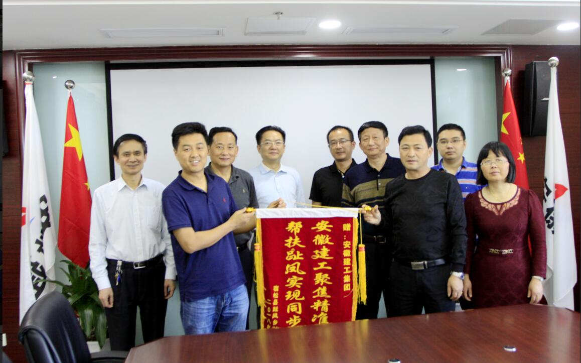5月3日,恰逢安徽建工集團派駐趾鳳村扶貧工作隊一周年之際,安建國際大廈迎來了一批特殊的客人——宿松縣趾鳳鄉、村兩級政府代表赴合肥,專程向集團贈送錦旗,以表達受助幫扶的感激之情。集團總經理劉家靜、黨委副書記牛曙東、副總經理霍向東親切接見了來訪一行,并就駐村扶貧工作開展進行了深入交流。