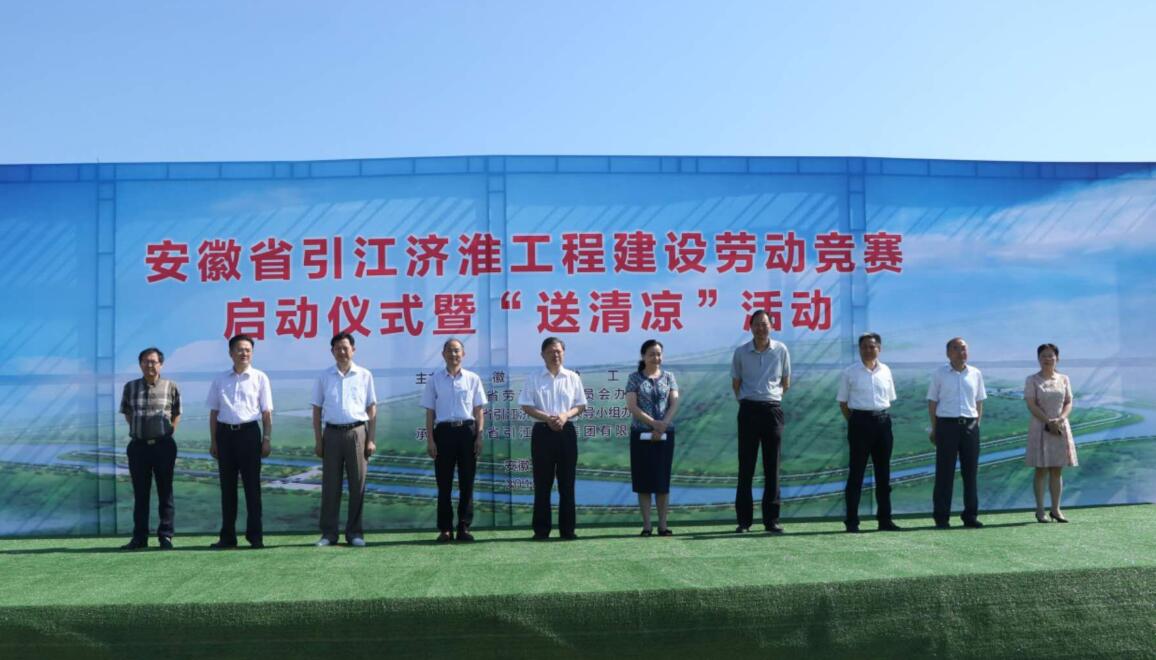 7月18日,由安徽省總工會、安徽省勞動競賽委員會辦公室、安徽省引江濟淮工程領導小組辦公室合作主辦的安徽省引江濟淮工程建設勞動競賽啟動儀式暨“送清涼”活動在安徽水利派河口泵站項目及小合分線項目成功舉辦。安徽省人大常委會副主任、省總工會主席李明參加活動,并就有關工作進行指示。省總工會副主席李素萍、省總工會經審會主任胡東輝、省國資委監事會主席鄭成雨、合肥市總工會主席張業鎖及地方有關領導、省引江濟淮集團領導出席活動,集團總經理劉家靜、副總經理許克順受邀出席了此次活動,安徽水利工會主席朱樂華陪同參加了活動。