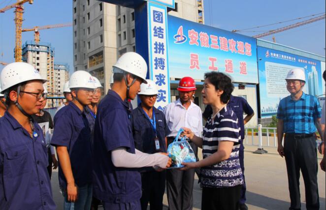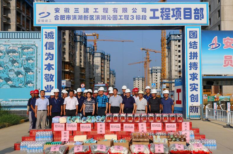8月7日下午,省住建廳黨組書記、廳長趙馨群,副廳長吳桂和一行在集團公司總經(jīng)理、黨委副書記劉家靜,安徽三建公司董事長、黨委書記左登宏等陪同下,來到安徽三建公司濱湖沁園產(chǎn)業(yè)化項目,看望和慰問奮戰(zhàn)在施工一線干部職工,調(diào)研集團公司夏季防暑降溫工作,實地察看了施工現(xiàn)場并送來防暑降溫用品。