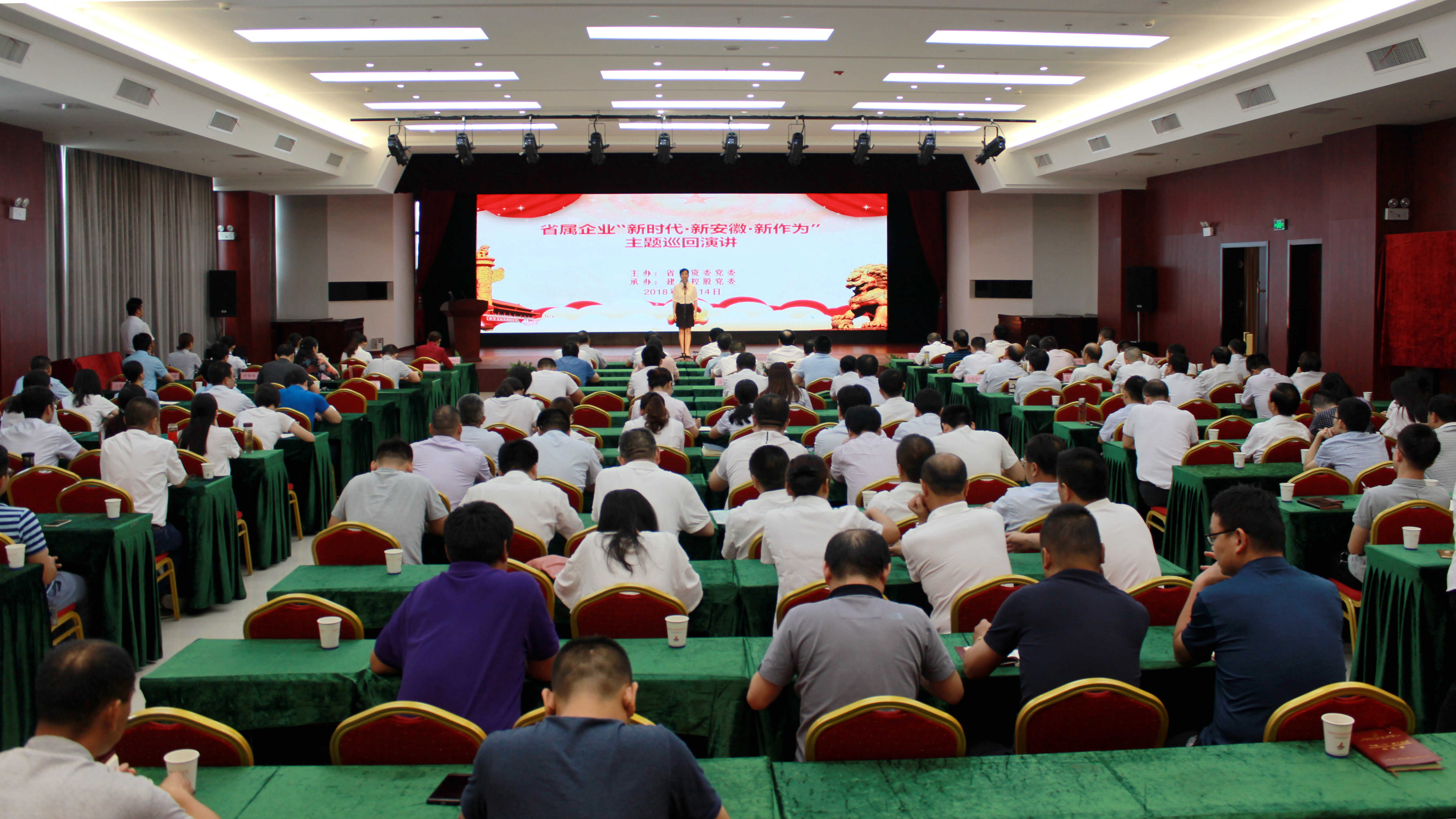 8月14日下午,由省國資委組織的省屬企業“新時代•新安徽•新作為”主題巡回演講在安徽建工集團成功舉辦。集團黨委副書記牛曙東致歡迎辭、紀委書記宋志華出席活動,省國資委組宣處處長金進、副調研員劉海燕一行到會指導。來自集團所屬各單位和機關的170多名黨員干部和職工代表聆聽了此次演講。
