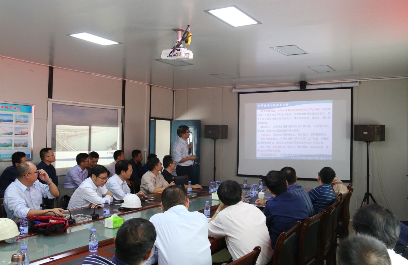 隨后,觀摩團(tuán)乘船來(lái)到大橋局福平鐵路FPZQ-3標(biāo)項(xiàng)目部,在項(xiàng)目會(huì)議室,雙方舉行了觀摩交流會(huì)議。中鐵大橋局副總工程師兼項(xiàng)目總工程師王東輝用視頻、PPT形式向觀摩團(tuán)一行講解了平潭海峽公鐵兩用大橋項(xiàng)目的工程概況及特點(diǎn)和難點(diǎn)、項(xiàng)目主要?jiǎng)?chuàng)新點(diǎn)、項(xiàng)目施工組織管理、主要施工方案、項(xiàng)目質(zhì)量安全管理、四新技術(shù)、科研情況及項(xiàng)目最新進(jìn)展。項(xiàng)目經(jīng)理姚華等就觀摩人員提出的問(wèn)題一一做了解答,并交流了個(gè)人體會(huì)。