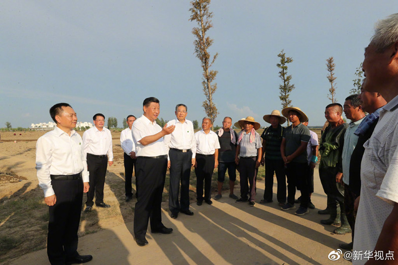 “這一直是我牽掛的事。”18日下午,正在安徽考察調研的習近平總書記來到阜陽市阜南縣蒙洼蓄洪區利民村西田坡莊臺,頂著炎炎烈日,走進田間地頭,深入莊臺農戶,看望慰問受災群眾。鄉親們告訴總書記:“蓄洪期間,大家住在莊臺,電沒斷、水照供、生活用品有人送。現在水退了,都在搶種補種,水退到哪里,就補種到哪里。請總書記放心!”習近平高興地說:“我一直牽掛災區的群眾,看到鄉親們生產生活都有著落、有希望,我的心就踏實。”