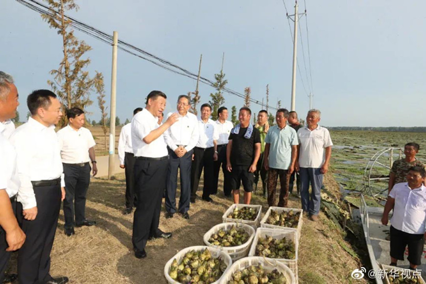 “這一直是我牽掛的事?!?8日下午,正在安徽考察調(diào)研的習(xí)近平總書記來到阜陽市阜南縣蒙洼蓄洪區(qū)利民村西田坡莊臺,頂著炎炎烈日,走進田間地頭,深入莊臺農(nóng)戶,看望慰問受災(zāi)群眾。鄉(xiāng)親們告訴總書記:“蓄洪期間,大家住在莊臺,電沒斷、水照供、生活用品有人送?,F(xiàn)在水退了,都在搶種補種,水退到哪里,就補種到哪里。請總書記放心!”習(xí)近平高興地說:“我一直牽掛災(zāi)區(qū)的群眾,看到鄉(xiāng)親們生產(chǎn)生活都有著落、有希望,我的心就踏實。”