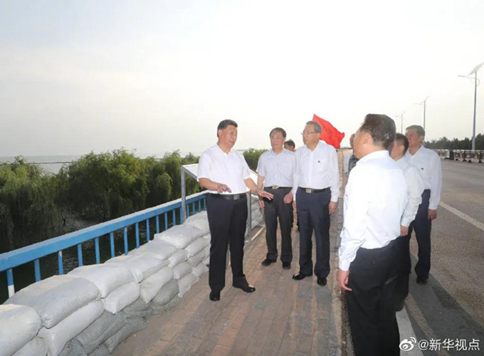 日下午在安徽省合肥市考察調研。他在肥東縣十八聯圩生態濕地蓄洪區巢湖大堤羅家疃段,察看巢湖水勢水情,看望慰問防汛抗洪一線人員、先進典型代表和參加抗洪搶險的解放軍、武警部隊官兵。當天下午,習近平在合肥還參觀了安徽創新館和渡江戰役紀念館,了解安徽省科技創新和新興產業發展情況,重溫革命歷史、緬懷革命先烈。