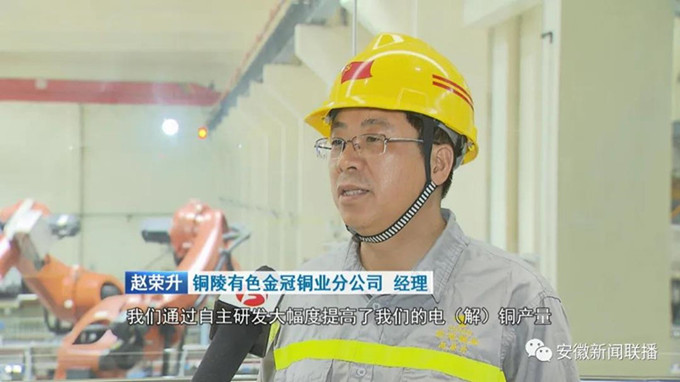 我們通過自主研發大幅度提高了我們的電(解)銅產量,而且也提高我們電(解)銅質量,我們現在電(解)銅含銅已經達到了99.9997%,在全世界已經走在最前列,通過這個項目的建設產值每年增加了70個億,利潤也增加了3到5個億。