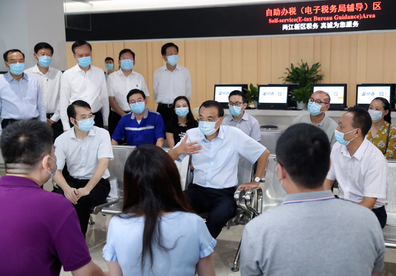 在洪水尚未完全退去的磁器口商業區,李克強一連走進多家商戶,并與群眾和游客交流,了解因疫情和水災造成的商家損失,考察消費和旅游恢復情況。他說,加快服務業全面復業帶動消費擴大,對于鞏固經濟恢復性增長態勢至關重要,要在做好常態化疫情防控下,發揮國家政策扶持作用,助力企業和商戶渡過難關,促進旅游等服務業正常經營,釋放巨大消費潛力。