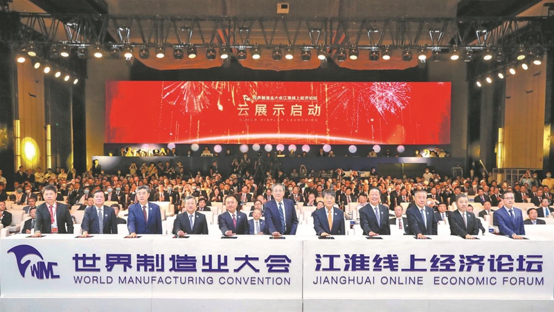 9月12日上午,世界制造業大會江淮線上經濟論壇開幕式暨主旨論壇在合肥隆重舉行。開幕式上,李錦斌、李國英、張昌爾等省領導和與會嘉賓共同啟動云展示,并觀看云展示精品路線。本報記者 徐國康 吳文兵 攝