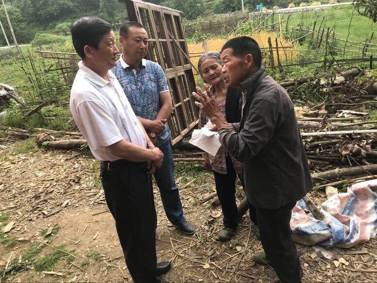 圖為鄭軍書記(靠左白衣)看望貧困戶