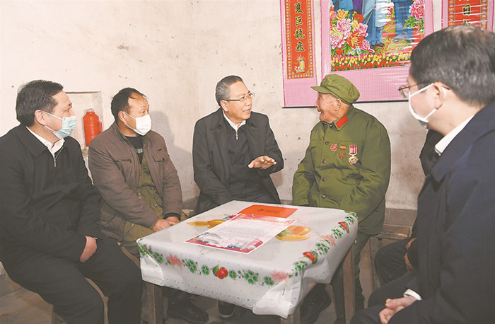 2月5日,省委書記李錦斌來到涇縣琴溪鎮玲芝村走訪慰問抗美援朝老戰士左保明,向他致以親切問候和新春祝福。