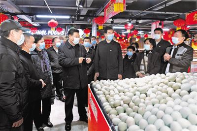 前來置辦年貨的群眾熱情向總書記問好。習(xí)近平親切詢問大家年貨備齊沒有。習(xí)近平強(qiáng)調(diào),各級(jí)黨委、政府和領(lǐng)導(dǎo)干部要把事關(guān)百姓切身利益的事情抓實(shí)抓好,尤其要落實(shí)防疫措施,加強(qiáng)食品安全監(jiān)管,確保百姓過年安心、放心、舒心。