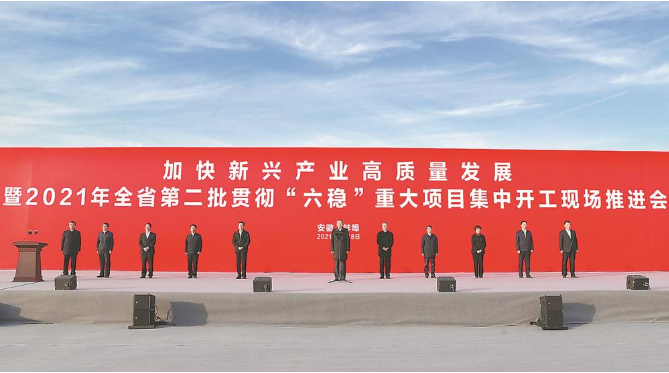 2月18日下午,加快新興產業高質量發展暨2021年全省第二批貫徹“六穩”重大項目集中開工現場推進會在蚌埠市舉行。