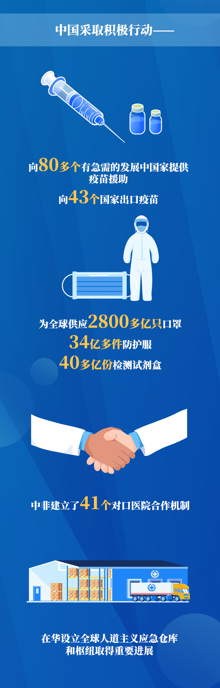 一年來,疫情反復,病毒變異,形勢依然復雜嚴峻,國際社會急切期待更多的信心、希望和合作。習近平主席心系蒼生,胸懷世界,領導開展新中國歷史上規模最大的全球人道行動,為全球抗疫貢獻中國智慧和力量,用實際行動踐行人類衛生健康共同體理念,得到國際社會高度肯定和積極響應。