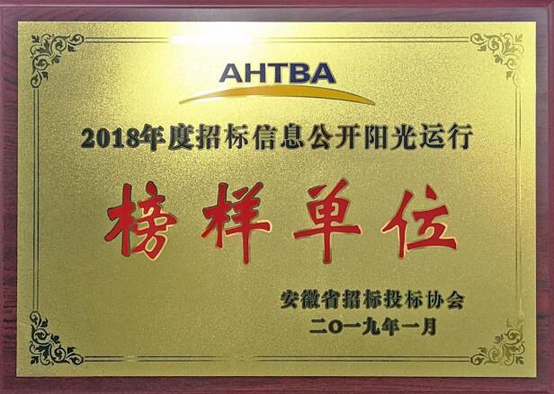近日,安徽省招標(biāo)投標(biāo)協(xié)會第二屆會員代表大會第三次會議暨第二屆理事第四次會議在合肥順利召開,會上,集團公司被授予“2018年度招標(biāo)信息公開陽光運行榜樣單位”榮譽稱號。