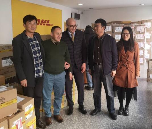 春節期間沒有回國探親,選擇堅守海外一線的駐阿經理部黨總支書記韓立兵在接到國內通知后,立刻組織物資采購和翻譯人員成立臨時采購小組,帶隊挨家走訪藥店,挨個打電話聯系醫療設備批發商,尋找符合國內防疫需求的物資。幾經奔波,終于尋得一家藥店承諾可訂購10萬個醫用外科口罩,大家精神振奮,心里懸著的石頭終于落了地。然而,次日清晨采購小組按照約定來到藥店取貨時,卻被告知只到貨5000個口罩。同時,另一家承諾可出售防護服的醫療器材供貨商也只拿出了不符合國內防疫要求的半身式防護服和3000個醫用外科口罩。失望之余,大家并不氣餒,繼續拿起手機撥打電話,努力搜索貨源信息。功夫不負有心人,很快,韓立兵得到信息,一家醫療器材進口商正在出售3M防護服。此時,忙碌了一上午采購小組顧不上吃飯,立即趕到這家進口公司,驚喜地發現,除3M防護服外,這家還有存量不小的與N95功效相當的歐標FFP2口罩。由于防護服貯存在較遠的倉庫,為爭分多秒,盡早將物資送往國內,采購小組決定先購買2400個FFP2現貨口罩,連同當天購得的醫用外科口罩一起,送往DHL航空貨運公司辦理加急發運手續。