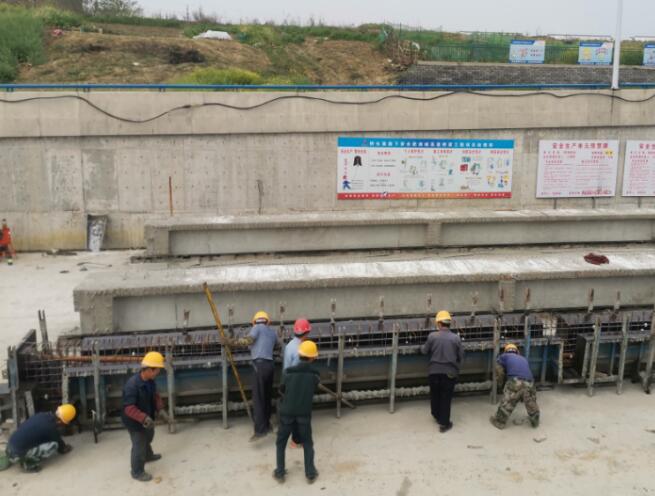 4月10日,在橋頭集路項目施工現(xiàn)場,多名工人正在鋼筋加工場、梁板預(yù)制場井然有序的忙碌著,現(xiàn)場熱火朝天。